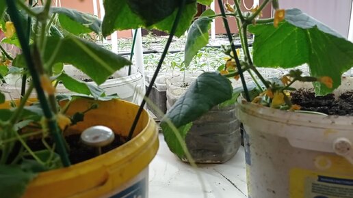 Огурцы Балконный Хикмет и Трюкач .Прошло почти 2 месяца от посева .