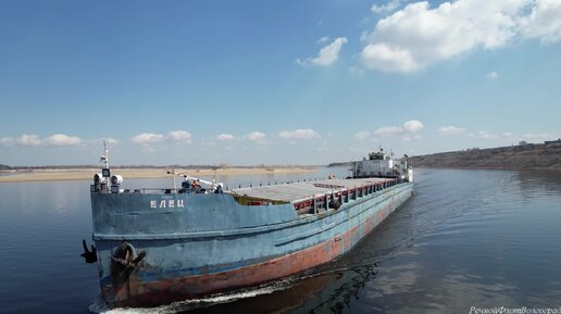 Сухогрузный теплоход Елец на Волге в Волгограде идет в Волго-Донской канал.