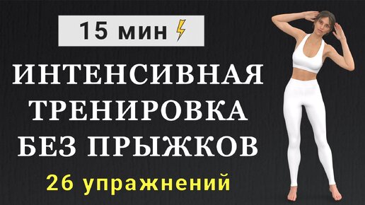 Интенсивная тренировка на 15 минут без прыжков: сжигаем жир и убираем проблемные зоны (26 упражнений без повторов)