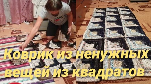 Бабушкин Коврик ручной работы из старых вещей , Квадратный коврик из тряпок /