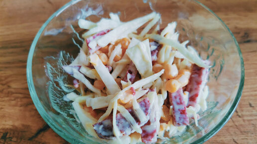 БЫСТРЫЙ САЛАТ С КОЛБАСОЙ. ПРОСТОЙ РЕЦЕПТ.