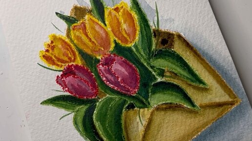 Рисуем в выходной! Открытка на 8 марта восковыми мелками и акварелью. Спасибо ЗА 👍🏻