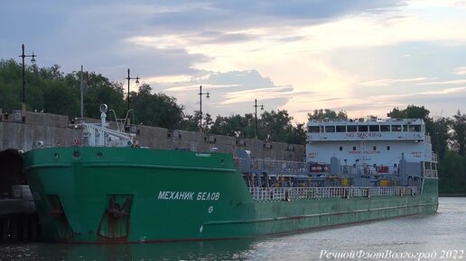 Танкер Механик Белов заходит в первый шлюз Волго-Донского судоходного канала в Волгограде.