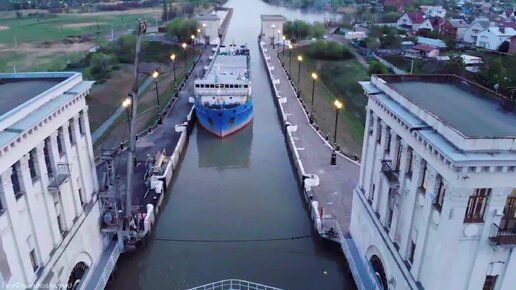 Теплоход Бегей (СТ 1300 овощевоз) в 3м шлюзу Волго-Донского Судоходного Канала в Волгограде.Россия.