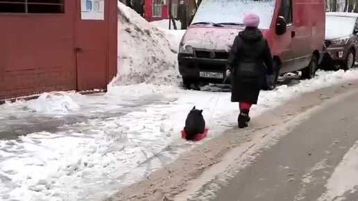 Вот такого пухлого пёсика заметили в Москве. Наверное, всю масленичную неделю он провел у бабушки😄