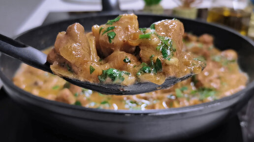 Мясо с грибами по-грузински, хоть с картошкой, хоть с гречкой подавай. Вкусно - пальчики оближешь