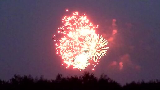 4 летящие утки, напуганные салютом. Можно заметить весь диск луны, хотя и не полнолуние