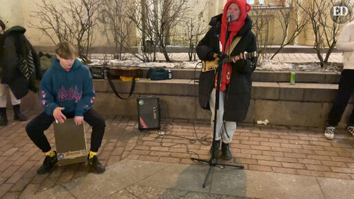 Девушка красиво спела песню «Я делаю шаг» группы The Hatters – уличные музыканты Петербурга