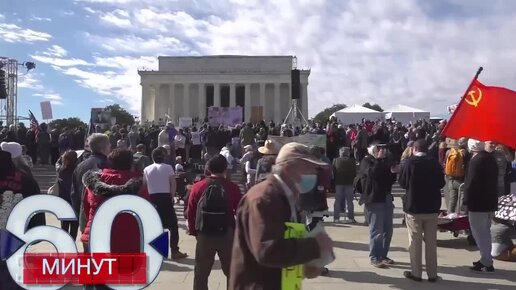 В Вашингтоне прошла акция против участие США в войне на Украине. Протестующие с красными флагами