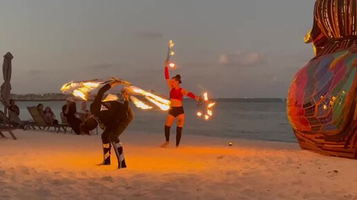 Огненное шоу на пляже Канкуна. Часть первая