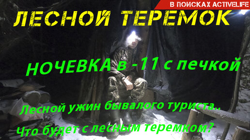 Зимняя ночевка в ЛЕСНОМ ТЕРЕМКЕ. Лесной ужин бывалого туриста. Переночевал в -11 с печкой. Серия 2