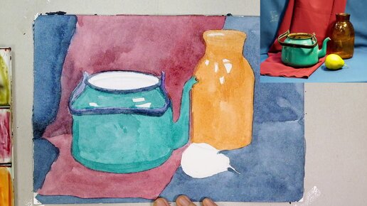 Натюрморт из 3 предметов быта разных по цвету, конструкции и фактуре на темном фоне Урок 1