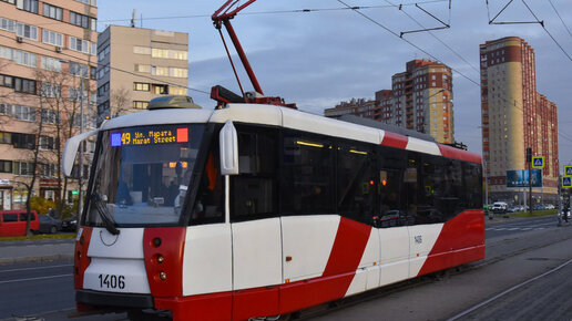 Трамваи ЛМ-2008 и ЛМ-99АВН на 43 маршруте Северной Пальмиры