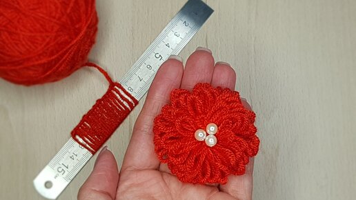 Теперь часто использую этот способ! Цветочек из пряжи на линейке получается очень симпатичный!