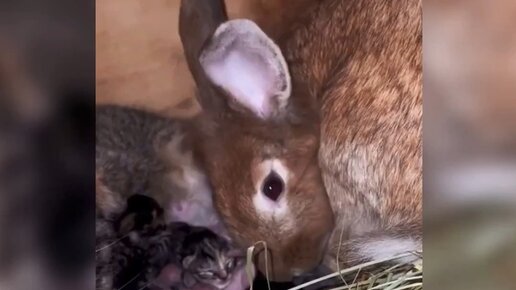 Ничего трогательнее вы сегодня уже не увидите: перед вами удивительная дружба кошки и крольчихи и их пушистого потомства