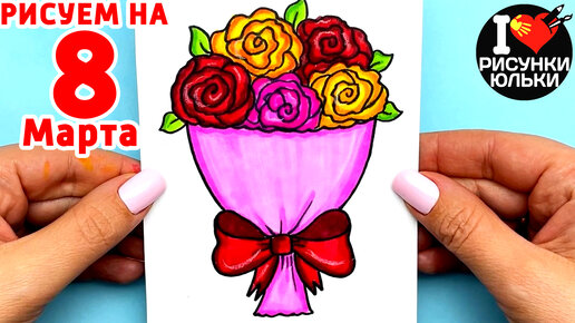 Рисунок на 8 Марта для Открытки | Как нарисовать Букет Цветов | Рисунки Юльки к 8 Марта