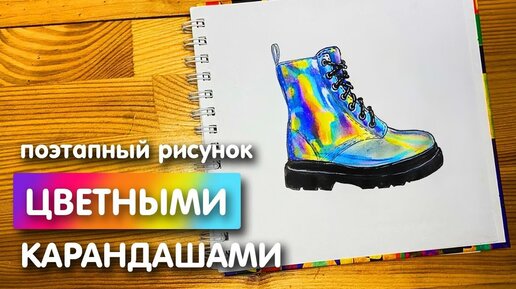 Рисунок цветными карандашами "Ботинок" | Поэтапная срисовка для начинающих