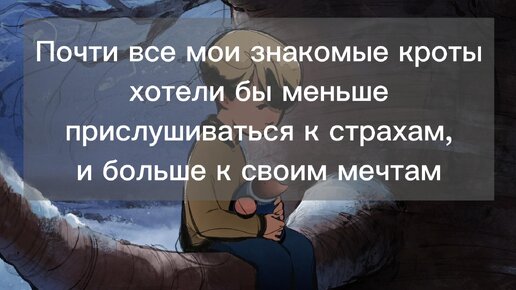 4 часть. Большинство старых кротов,которых я знаю,хотели бы меньше прислушиваться к страхам и больше к своим мечтам.
