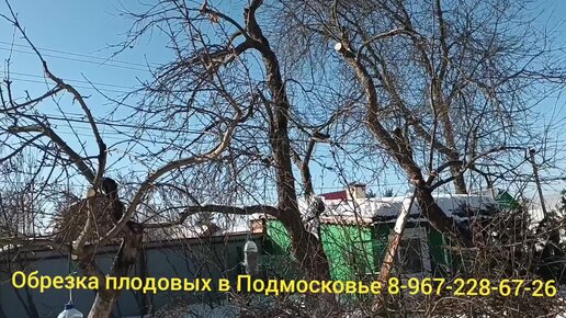 Исправление и корректировка кроны старых высоких яблонь, февраль 2023
