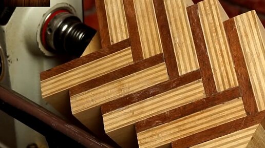Склеиваем вместе фанеру в зигзагообразное форме и начинаем крутить на токарном стонке!
