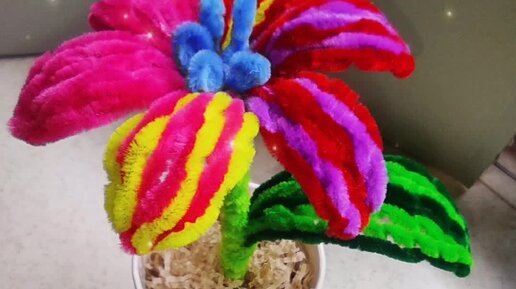 Совместное творчество с детьми. Поделка в школу, в садик, к 8 Марта. Цветок из цветной синильной проволоки.