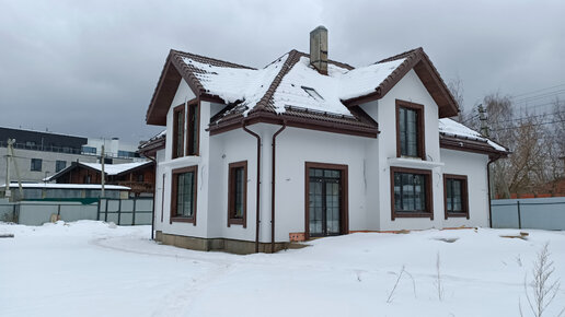 Как выглядят фасады дома, утеплённого минватой, базовый армирующий слой без декоративной штукатурки, просто окрашен фасадной краской