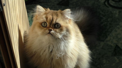 Смешная кошка Оля в солнечных лучах