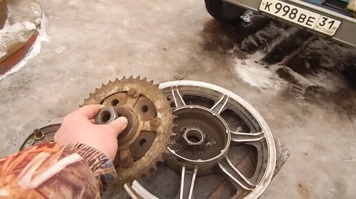 Установка ведомой звезды от ИЖ Планета Спорт на литое колесо ИЖ Орион