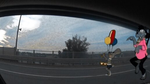 Вол и заяц из мультика гуляют по дороге