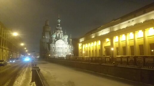 Санкт-Петербург 2023. Ночной зимний город. Набережная канала Грибоедова.