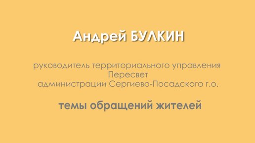 Выездная администрация. Руководитель территориального управления Пересвет администрации СПГО Андрей Булкин