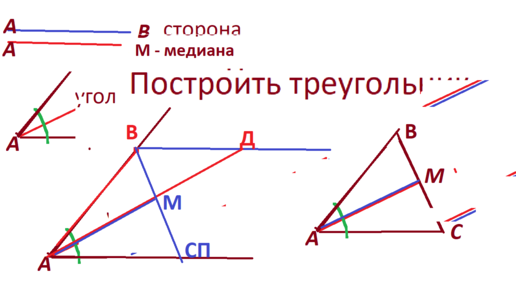 Построить треугольник - по стороне АВ, углу А, и медиане АМ с помощью циркуля и линейки