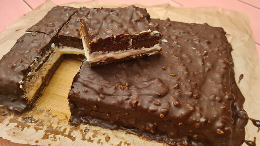 Нежнейший торт-пирожное в шоколадно-арахисовой глазури🔥 Воздушный бисквит, вкусный крем, хрустящая глазурь👍 Рецепт очень вкусного десерта!