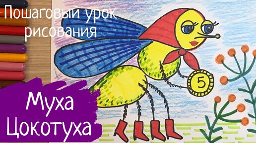 Муха рисунок Муха цокотуха рисунок к сказке Корней Чуковский. Сказочный герой рисунок. Карандаши и краски.