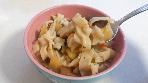 Домашняя лапша - это всегда вкусно и сытно. А если лапша грибная, так это еще и ароматно. Готовится быстро, самый простой рецепт лапши
