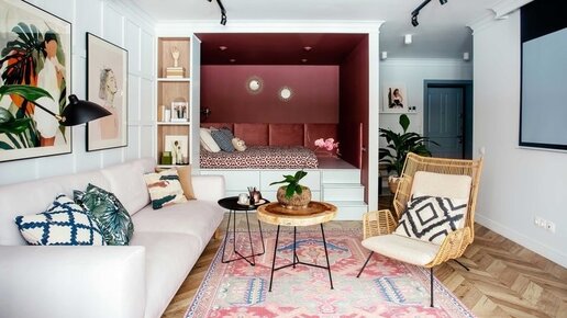 Очаровательный интерьер квартиры на 47м² с колоритной, но уютной атмосферой.