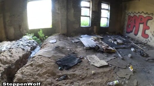 Заброшенная колхозная автобаза в городе Калязин. Проколол ногу гвоздём до кости. Кругом нарисованы шляпы и разруха которая видна во всём.