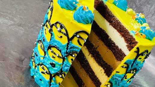 Неудачный Дизайн!Ну очень вкусный внутри 😊👍🎂🎂🎂Шоколадная и Йогурто Сливочная Муссовая Начинка!!