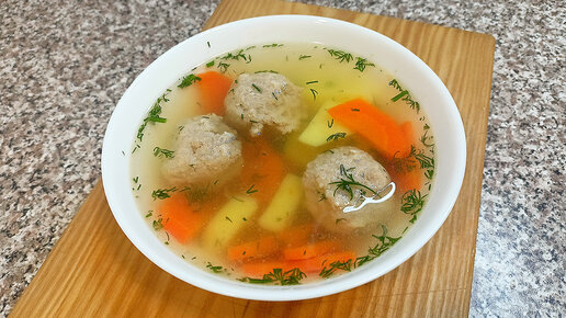 Суп с мясными фрикадельками на рыбном бульоне