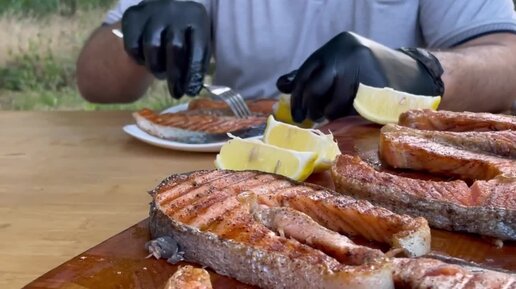 Стейк Лосося на масле и на сухой сковородке Жареная рыба