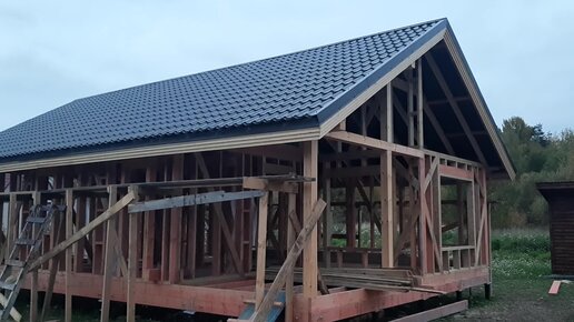 Каркасный дом под кровлю. Ветровая/лобовая доска, торцевые планки от мет. черепицы, снегозадержатели. ral: RR-32 grandline