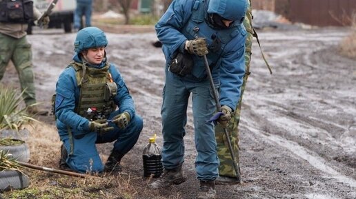 Российские саперы производят разминирование Донецка от украинских «лепестков»