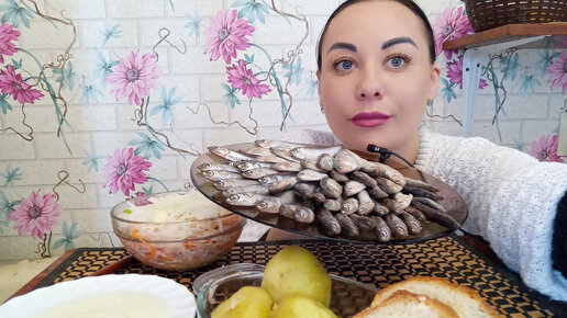 Килька, хамса, картошка, маринованная капуста/Мукбанг