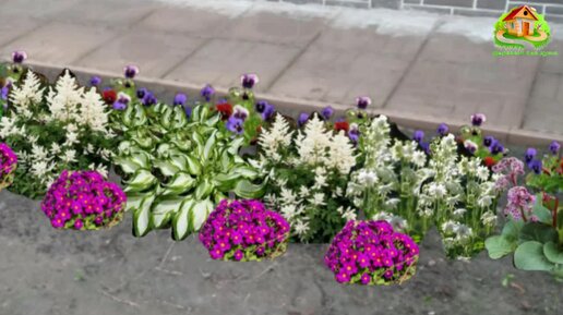 Пёстролистная хоста в окружении аквилегии и астильбы. Создала дизайн-проект цветника с многолетниками для тенистого места в саду