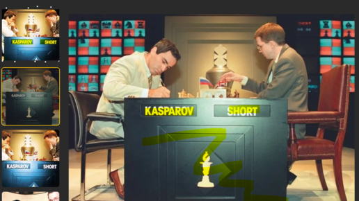 Найджелл Шорт думал, что устоит, играя черными - не тут-то было: в начале 40-х ходов партии начались "зевковые истории" (Линарес, 1990, 1-0)