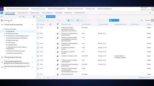 Ведение номенклатуры дел в системе «Архивное дело»