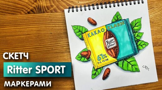 Как нарисовать шоколадку "Риттер спорт" скетч маркерами | Рисунок для детей, поэтапно и легко