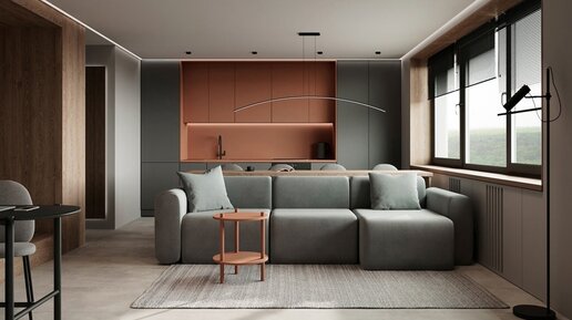 Очаровательный дизайн-проект квартиры на 38м² с яркими акцентами и элементами дерева.