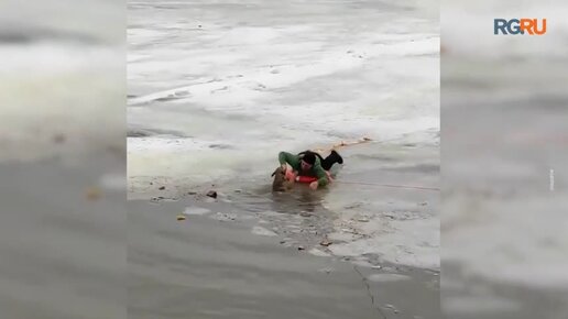 Спасение провалившейся под лед собаки