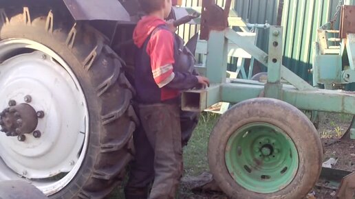 Самодельный трактор,ремонт передней балки и регулировка плуга.